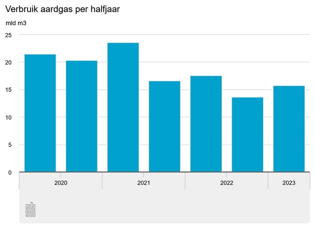 Het CBS laat in cijfers zien dat Nederland zuiniger met gas omsprong. Het gasverbruik in Nederland lag 10 procent lager in de eerste helft van 2023 in vergelijking met de eerste helft van 2022. In hetzelfde bericht wijst men erop dat de invoer van vloeibaar aardgas met bijna 50 procent stijgt.
