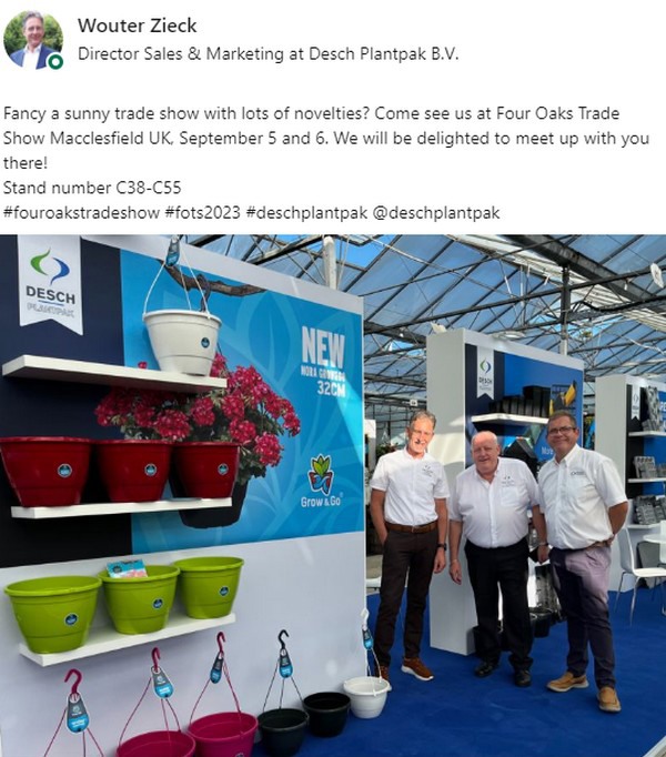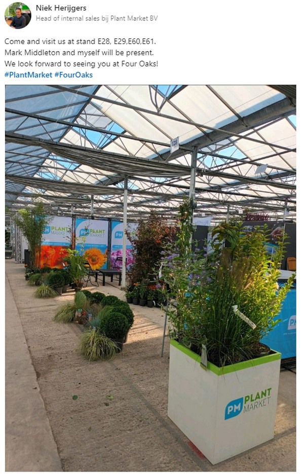 De 51e editie van de Four Oaks Trade Show zit erop. De beurs vond plaats op een kwekerijvan 23 hectare in Cheshire, Verenigd Koninkrijk, vlakbij de Jodrell Bank Radio Telescope, en beslaat een oppervlakte van 13.000 mยฒ onder glas met extra buitenterreinen. Meer dan 300 exposanten toonden hun producten en diensten en er zijn heel wat foto's gedeeld op sociale media. HIeronder een greep uit de vele foto's die op social media verschenen tijdens de twee beursdagen, op 5 en 6 september..