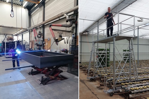 Naast de tuinbouw levert Telako ook aan meer sectoren, zoals woning- en utiliteitsbouw, interieur- en standbouw, automotive, particulieren en dan dus, nogmaals, vooral het maatwerk. “Seriewerk doen we ook wel en we kunnen goed concurreren met de bestaande bedrijven, maar het is niet onze kracht. We kunnen immers alles zelf– nou ja alles, veel: alleen lasersnijden besteden we uit – en hebben in het wereldje een uitgebreid netwerk. Klanten weten ons te vinden met vragen die net even anders zijn. Een voorbeeld is passagierstreintjes maken voor in de DAF-fabriek, of constructies waarmee meerdere fust tegelijk gevuld kunnen worden middels een gietboom, of tafelonderstellen, of (over)gewaswagens, of kolombeschermers, of substraattrechters, etc.”