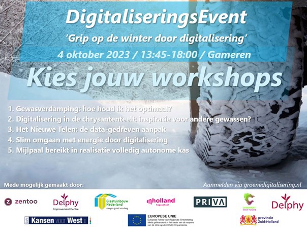 Op 4 oktober 2023 wordt het DigitaliseringsEvent georganiseerd waarmee telers grip kunnen krijgen op de teelt met digitalisering. Het event is geschikt voor zowel groente-, zachtfruit- als siertelers.