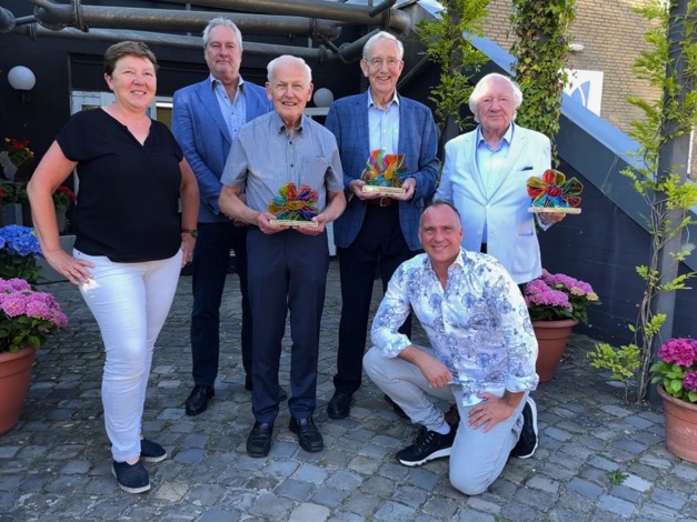 Het nog voltallige bestuur van Stimuflori: Marielle Ammerlaan, Fons Overwater, Cor Vonk Noordegraaf, Wim Kea, Winfried Versluis en Piet Wapperom.