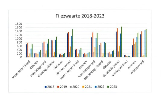 De ANWB concludeert dat de effecten van het thuiswerkadvies en buiten de spitsuren te reizen na het beëindigen van de coronamaatregelen nog maar zeer beperkt merkbaar is op de weg. Op vrijwel alle werkdagen is het aantal files dit jaar toegenomen. De filezwaarte tijdens de ochtendspits nam toe met 12 procent. Overdag en tijdens de avondspits nam de verkeersdrukte dit jaar nog meer toe en steeg de filezwaarte met zo’n 20 procent. Opmerkelijk is dat de filezwaarte tijdens de toch al rustige vrijdagochtend nog verder is gedaald met 14 procent en van een spits nauwelijks meer sprake is.