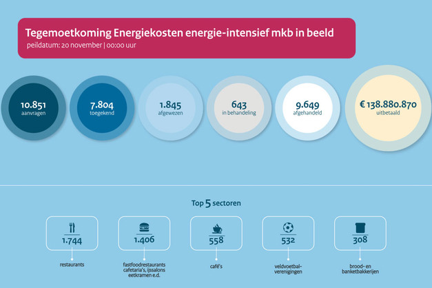 open stond was op 2 oktober 2023. Op 20 november heeft het RVO 10.851 aanvragen vastgesteld waarvan er 7.804 zijn toegekend. In totaal is er €138.880.870 uitbetaald. Er zijn nog 643 aanvragen in behandeling.
