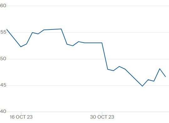 TTF-gasprijs contract 'december 2023' t/m 10 november 2023. Klik hier voor vergroting en de meest actuele cijfers.