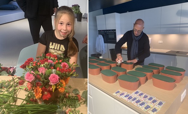 De kinderen konden onder begeleiding van Floraldesigner Pieter Landman één bloemstuk maken voor zichzelf en één voor de grootouders.