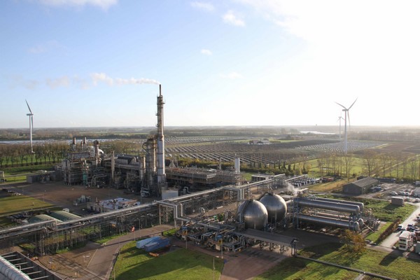 Bestaande CO2-fabrieken op het terrein van Yara Sluiskil waar momenteel afgevangen CO2 vloeibaar wordt gemaakt om vervolgens te verladen. De resterende CO2 die wordt afgeblazen is te zien als witte pluim uit de stack van de fabriek.