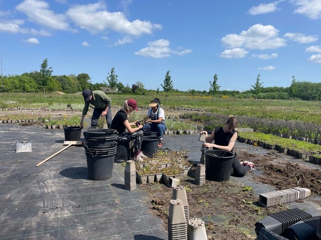 Medewerkers uit het pakhuis van Sprinklr gingen elke week helpen om de schade in te halen bij Kwekerij Verhoeven. Foto: Sprinklr