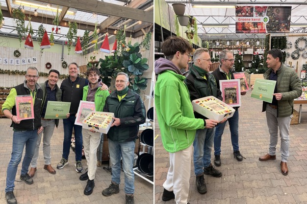GroenRijk & Landwinkel Zevenaar is de winnaar van de JUB Retail Award, voor de mooiste bloembollenpresentatie van 2023. Directeur Jaap-Jan Uittenbogaard en vertegenwoordiger Otto de Vroomen van JUB Holland reikten dinsdag 21 november de prijs uit aan Stijn Reintjes en Tom Jansen, binnen Groenrijk & Landwinkel Zevenaar verantwoordelijk voor de bloembollenpresentatie. Zij en de medewerkers ontvingen naast de award, een heerlijke taart en een cheque ter waarde van € 750,00 voor de personeelsvereniging.