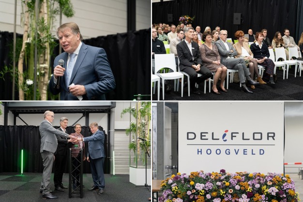 Er zijn al een paar proefrondjes gedraaid maar het was dit weekend dat Deliflor Hoogveld, het nieuwe bewortelingsbedrijf van Deliflor (onderdeel van Beekenkamp) en Kreling Chrysanten, officieel werd geopend. Stek afkomstig van productielocaties in Afrika wordt hier machinaal in perskluitjes gestoken en zoeft vervolgens op roltafels volautomatisch door de 8.5 ha, over drie teeltlagen verdeelde en van alle mogelijke klimaattechniek voorziene kas.