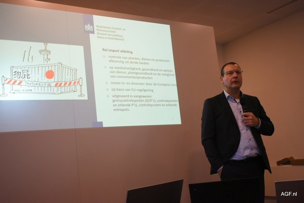 Vervolgens was het woord aan Peter Verbaas van het NVWA. Ook hij trachtte het proces bij de NVWA nader toe te lichten, maar ook in te gaan op waar er problemen in het proces kunnen ontstaan. De focus ging hierbij met name op het importproces, waar Peter aangaf dat Nederland een zeer groot importland is en de NVWA voor controle staat voor alles wat binnenkomt. Hij ziet dat importeurs op het gebied van levensmiddelen de belangrijkste groep is waar ze mee te maken krijgen en ook de groep met de meeste vragen. Naar aanleiding van een uitleg over het keuringsproces geeft het afdelingshoofd importkeuring aan waar de kinken in de kabel kunnen komen.