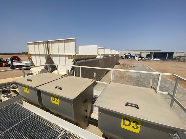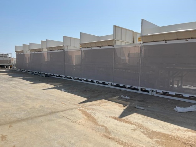Om het wegwaaien van de grondstoffen in de zandstormen tot een minimum te beperken, zijn alle banden voorzien van afdekplaten. Tevens is om de hele menglijn speciaal doek gespannen om de windkracht te beperken.