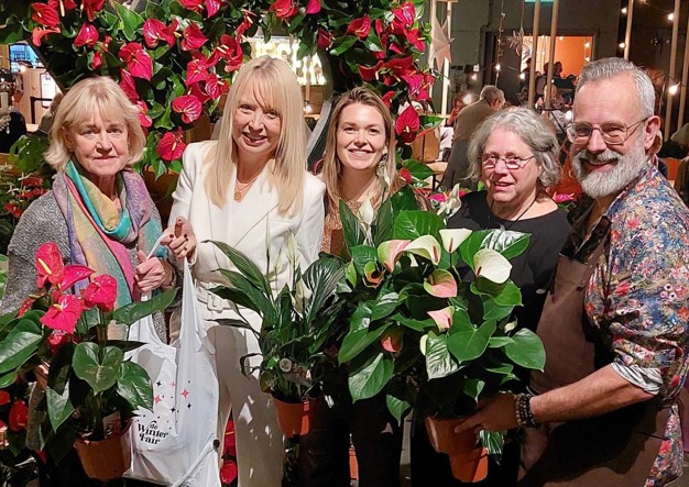 Anthurium Info en Air So Pure namen afgelopen dagen deel aan de Winterfair in de Brabanthallen en hebben de ruim 400 planten die op de beurs te bewonderen waren geschonken aan Stichting Bij Katrien. Op de laatste dag van vond de overhandiging plaats aan voorzitter Liesbeth van Drunen en bestuurslid José van Dijk. Groenexpert Romeo Sommers, die zeven dagen lang workshops gaf op het indrukwekkende Groenplein, leidde de donatie.