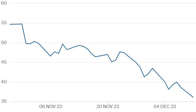 Maandag is de TTF-gasprijs verder gezakt. Het TTF-januaricontract sloot af op 36,118 euro per megawattuur. Dinsdag opent de contractprijs voor januari op 36,3 euro. Opvallend is dat voor de zomer van 2024 de contractprijzen momenteel hoger liggen.