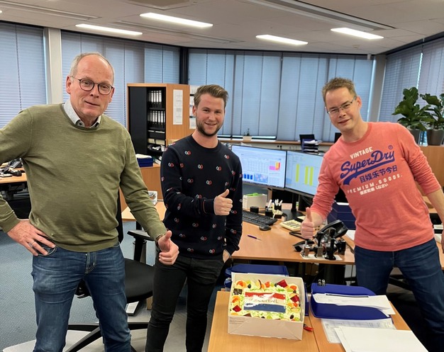 Afgelopen week is de eerste zending bloembollen inclusief de exportcertificering volledig papierloos verzonden en door het VK geaccepteerd. Hiermee heeft de bloembollensector de primeur. Onings uit Poeldijk is het handelsbedrijf dat dit met behulp van het Ketenregister voor elkaar kreeg. Om deze mijlpaal te vieren, heeft Royal Anthos eerder vandaag een taart met eCert-logo bij het bedrijf bezorgd.