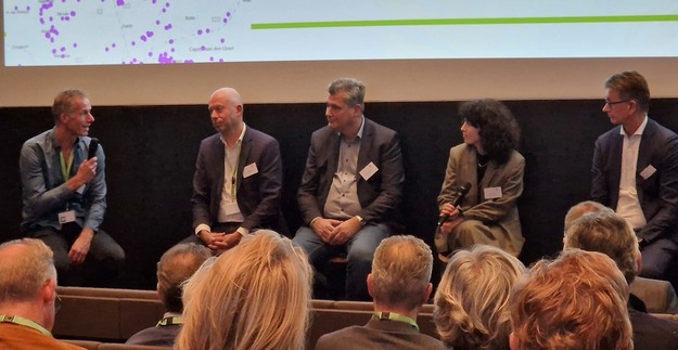 Paneldiscussie met v.l.n.r. Paul van Schie, Sander Mertens, Frank Binnekamp, Atoesa Farokhi en Rien Bot
