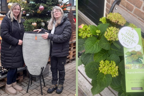 De Magical Green Revolution was vanaf mei te koop, in heel Europa. Onder de gelukkige kopers heeft Magical Hydrangea Capi-watertonnen verloot. Een toepasselijke prijs, want Hydrangea’s zijn dorstige planten: in het Latijn betekent Hydrangea ‘watervat’. Met deze prijs geeft Magical bovendien extra aandacht aan vergroening en het tegengaan van waterverspilling. Inmiddels zijn de winnaars benaderd en de regentonnen uitgereikt op de verkooppunten waar de Magical Green Revolution zijn gekocht. Eén van de winnaars is Lida Sneekes, zij kocht haar Magical Green Revolution bij Hortensia Specials in Breezand.