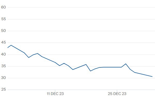 De laatste stand van zaken (29 december) voor wat betreft de TTF-gasprijs, maandcontract februari 2024. Klik hier voor de gasactualiteit bij de TTF.
