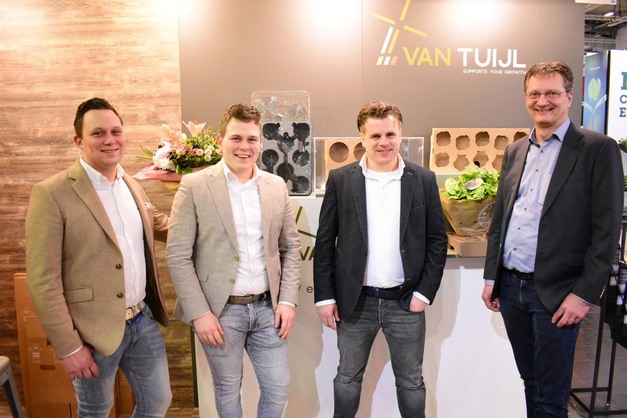 De broers Gerard, Leendert en Arjan van Tuijl samen met Gerardus stonden op de beurs en blinken uit in bloemenemmers, potten, trays en sticks.