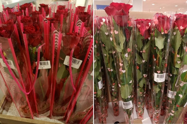 Gezien bij een filiaal van A&H: rode rozen a 7.99 of 5.99 per stuk: heeft de consument dat er nog voor over?