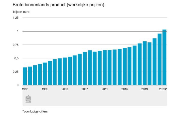 Nederlandse economie in 2023 over de grens van 1 biljoen euro