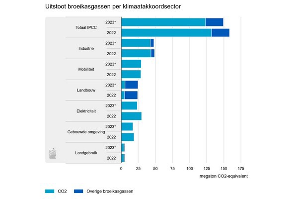 Het CBS deelt broeikasgascijfers voor 2023. De uitstoot in Nederland lag 6 procent lager dan in 2022. Dit komt vooral doordat de elektriciteitssector 22 procent minder CO2 heeft uitgestoten.
