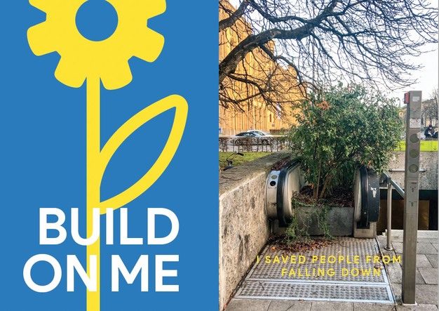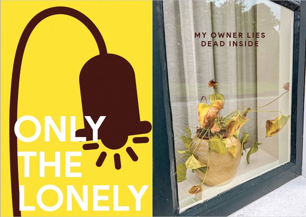 Humor helpt bewustwording en daardoor liefde voor plant en bloem. Mijn droom, samen, overal stickers op plakken waar het niet goed gaat. Al is het bij het Design Depot in Rotterdam. Zelfs daar, waar alle kunst, klimaatvriendelijk beschermd wordt, staat in het restaurant een hulpbehoevende plant.