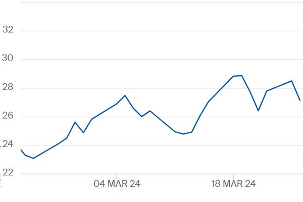 TTF-gasprijs contract april 2024 t/m 26 maart 2024. Klik hier voor actuele cijfers.