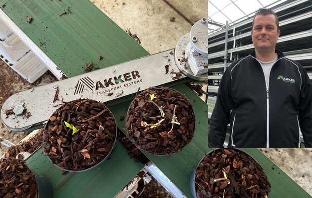 Nieuw dit jaar is dat er gewerkt wordt met een nieuwe transportband van Akker Transport Systems. "We hebben het assortiment uitgebreid", vertelt Robert van den Akker, "we hadden al banden van 17, 21, 25 en 30cm breed, maar nu dus ook van 45cm. Die hebben we er in eerste instantie bij genomen op vraag van klanten uit de veiling die, letterlijk, dozen schuiven, maar je kan er ook prima trays op kwijt en dat is toevallig hier weer erg handig. De band is helemaal nieuw, we hebben hem zelf gebouwd en hij is zowel te koop als te huur. Hij is in snelheid regelbaar en komt standaard in 6 meter, maar maatwerk is mogelijk."