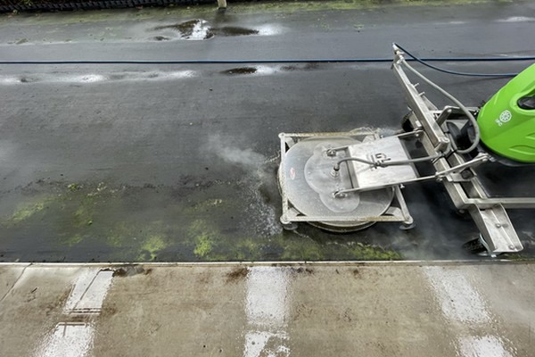 Niet alleen de toplaag van de vloer wordt gereinigd, ook onder het gronddoek dringt de heetwaterreiniging door. "In tegenstelling tot het schoonmaken van de vloer door middel van het afspuiten met hogedruk, raakt het gronddoek niet beschadigd en wordt het vuil niet verder verspreid in de kas. Het vuil wordt gelijktijdig opgezogen, samen met aanwezige algen, schimmels en bacteriën. Doordat de teeltvloer schoon is, blijft de waterdoorlaatbaarheid van de ErfGoedVloer optimaal."