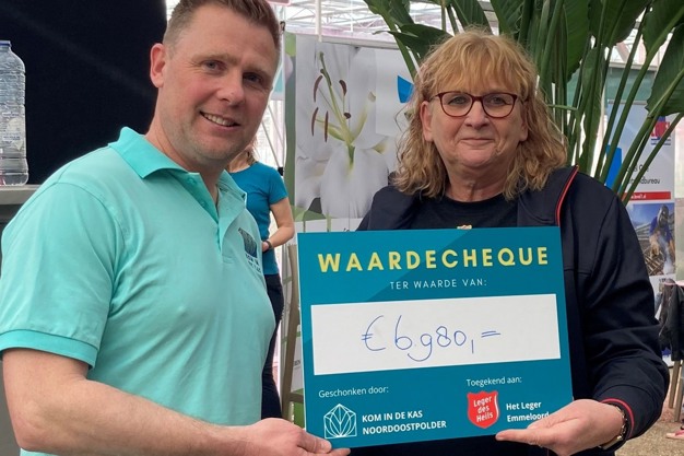 De veiling van alle producten uit de Kom in de Kas productpresentatie van de gezamenlijke telers in de Noordoostpolder bracht zaterdag maar liefst € 6.980 op. De opbrengst gaat in zijn geheel naar het Leger des Heils in Emmeloord. Het leger des Heils geeft zorg aan mensen die dat nodig hebben in de vorm van onderdak, kleding, eten en heeft een maatschappelijke functie. Het geld wordt voornamelijk besteed aan de inrichting van de buurthuiskamer.