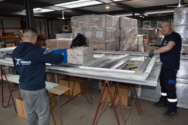 "Dankzij de gaasshuttles kunnen we nog efficiƫnter en nog veiliger werken", vult Ronald Kloppenburg aan. "Er kunnen meerdere geassembleerde gaasramen meegenomen worden op de shuttle. Inmiddels rijden er drie complete sets van deze gaasshuttles van Huismans Screen Systems. Door de efficiencyslag en toegenomen vraag uit de markt bevalt het zo goed, dat de vierde in de maak is. De shuttle wordt nu gebruikt voor het installeren van lamellen gaas profielen. De breedte van de shuttle is overigens verstelbaar. Het is aan te passen op een kapmaat van 3,20 tot vijf meter.