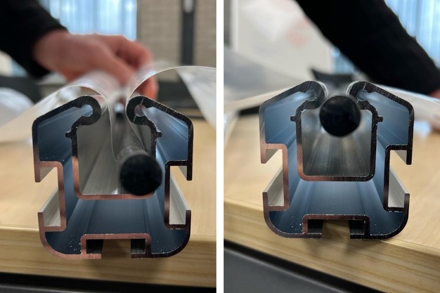 "Lassen is niet nodig als je horizontale schermen of verwarming wilt installeren", demonstreert hij. "Bovendien werken we alleen met M8-bouten, dus bouwers hoeven niet met veel verschillende soorten om te gaan. We hebben ons gefocust op efficiëntie en op eenvoud." Dit blijkt ook uit de raamprofielen. "Die zijn allebei precies hetzelfde, dus dat is altijd goed." Ze hebben ook de optie om insectengaas te integreren. "We hebben verschillende kasmodellen bestudeerd en wilden de meest complete kas mogelijk bieden."