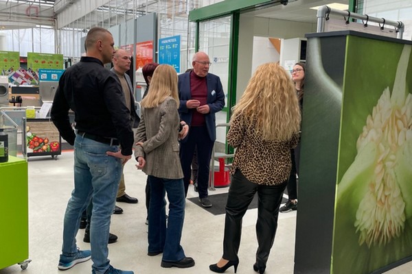 Tijdens de rondleiding kregen de gasten de gelegenheid om de kas te verkennen en meer te leren over groeiprocessen, energieverbruik, biologische gewasbescherming en waterbesparing. De gesprekken richtten zich ook op logistiek en duurzaamheid, waarbij onderwerpen als energie-efficiëntie en circulaire oplossingen aan bod kwamen.