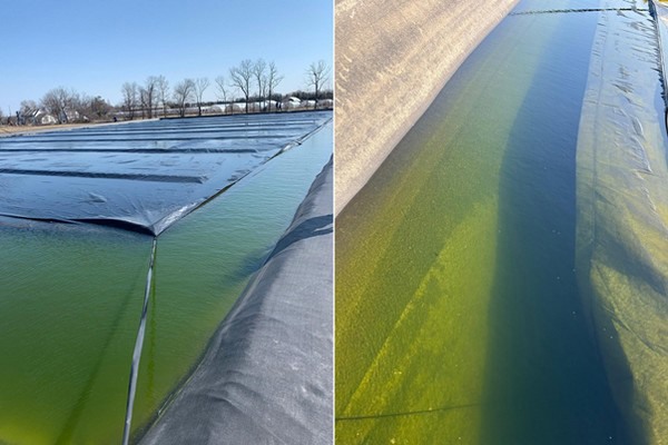 Voor én 2 dagen na behandeling van het water in de silo met USAF™ caviterende ultrasone zender bij C&B Farms in Leamington, Canada