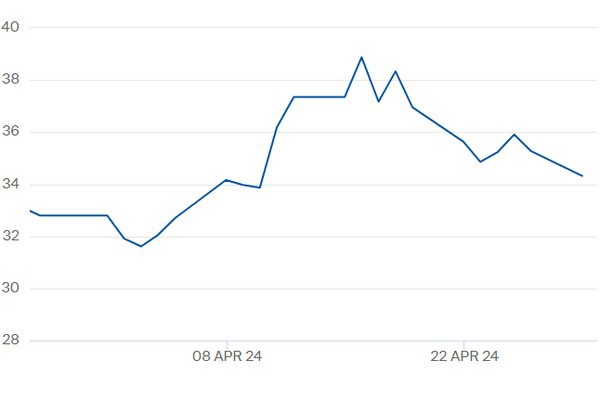TTF-gasprijs contract 'kwartaal 1 2025' t/m 29 april 2024. Klik hier voor actuele cijfers.