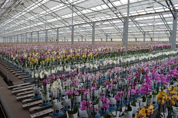 Tholen - De moderne Nederlandse phalaenopsiskweker heeft in een aantal opzichten wel iets van een assemblagelijn bij Tesla. Je ziet overal techniek, vrijwel niets wordt aan het toeval overgelaten en er komt hoegenaamd geen hand meer aan te pas. Maarel Orchids is hiervan een uitgesproken voorbeeld en Sendot, fabrikant van o.a. fotosynthesesensoren, komt er al geruime tijd over de vloer.