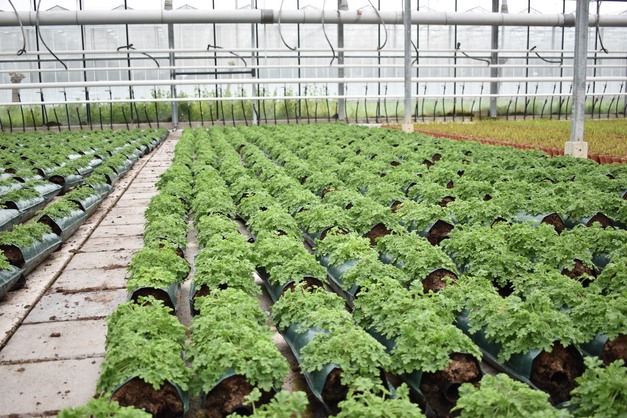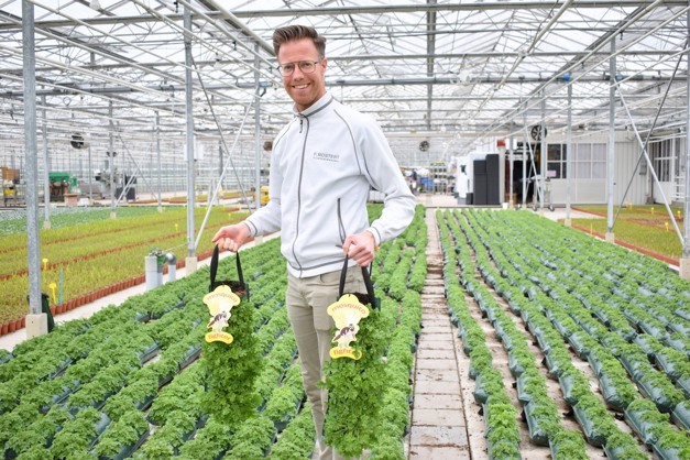 Naast de geranium bestaat het assortiment uit Cyclamen, Zantedeschia, Celosia, Senecio en sinds niet zo lang ook de Gerbera Garvinea. "Je probeert je te onderscheiden en die wandhanger is wat dat betreft een mooie aanvulling. Als het product zich daarvoor leent schuwen we er tegenwoordig ook minder voor terug te kiezen voor een wat grotere potmaat. Die Garvinea is daar een voorbeeld van. We hebben een tijdje de gerbera Durora geteeld omdat die buiten kan, lang staat en ook omdat mijn vrouw hem zo mooi vindt. Die Garvinea staat echter veel langer en is in dat opzicht een verbetering, maar heeft ruimte nodig en moet dus in een grotere pot."
