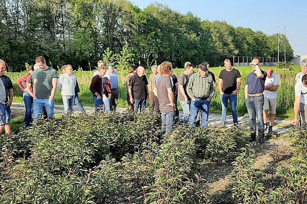 Na de rondleiding gaf Paul Koenraadt uitleg over hoe Nop-Fleur de onkruidbeheersing aanpakt. Er wordt gewerkt met een afbrandmachine, maar er is de afgelopen jaren met succes veel geëgd. Waarschijnlijk worden de planten door het eggen licht beschadigd, waardoor Phytophthora zich door deze invalspoorten makkelijker kan verspreiden. Met die veronderstelling heeft Paul besloten om te stoppen met het eggen.