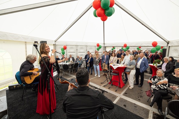 Fado-zangeres Argentina Freire en de twee begeleidende muzikanten Hans van Gelderen en Daniel Raposo gaven een optreden ten beste.