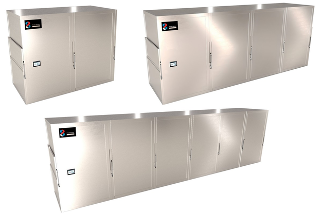 Met de klok mee: 2 eenheden render, 4 eenheden render en 6 eenheden render (Voor meer informatie over Freshxpress, het Rapid Cool-systeem, de geschiktheid voor verschillende industrieën en meer).