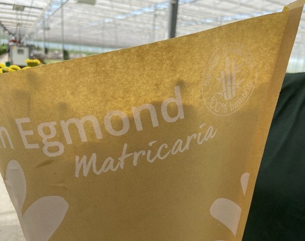 Al die bloemen moeten natuurlijk verpakt worden en jarenlang gebeurde dat in plastic folie en daarna in kraft papier. "Maar dat werkte toch niet helemaal naar ons zin, het papier kreukt en dat staat niet mooi." Dus besloot Johan samen met de medefirmanten om te kiezen voor een hoes gemaakt van bamboe papier. Toen kwam Koen Pack om de hoek kijken en inmiddels zijn de eerste hoezen in gebruik genomen. "Het kreukt veel minder en het is duurzamer, omdat een bamboe plant veel sneller groeit dan een boom. Na zes tot acht maanden is het al bruikbaar om er papier van te maken."