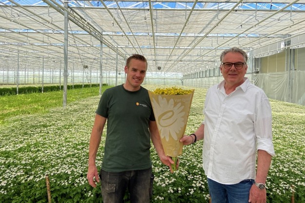 Johan van Egmond is vijf jaar geleden het familiebedrijf Van Egmond Matricaria, dat bestaat uit drie tuinen in Bleiswijk met een gezamenlijk areaal van 4,5 ha, ingerold. De productie van Matricaria is jaarrond en er worden wekelijks zo'n 200.000 stelen geoogst.