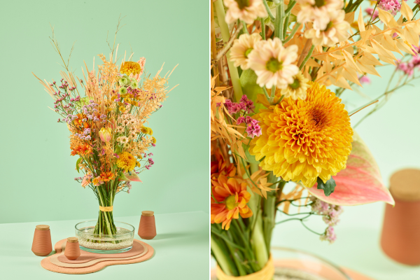 Manfred Hoffman - creatief directeur van de Duitse bloemistenvereniging FDF - en bloemenarrangeur Oliver Ferchland ontwikkelden vijf stylingideeën met chrysanten, afgestemd op de zomertrends van 2024.