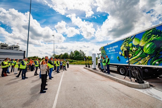 Albert Heijn opende 27 mei het nieuwe laadplein bij het distributiecentrum in Pijnacker. De supermarkt heeft in Nederland in totaal 270 laadpalen voor 74 vrachtwagens én 250 bezorgbussen. Albert Heijn reed vorig jaar al 2,5 miljoen kilometer elektrisch en gaat dit aantal in 2024 verdubbelen. Hiermee is de supermarkt hard op weg om alle klanten en winkels in Nederland en België in 2030 emissievrij te beleveren. "Bovendien stelt de supermarkt als eerste Europese retailer duurzaam opgewekte energie beschikbaar voor strategische partners. Een belangrijke stap om de doelstelling van 45% CO2e-reductie in scope 3 emissies te realiseren", zo melden ze.