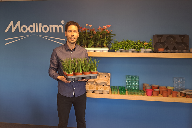 Naast kunststof trays biedt Modiform ook diverse transporttrays van geperste pulp. Deze trays zijn onderdeel van het merk ecoExpert, dat ook kartonnen bakjes, plastic houders en potten omvat. Arie: "ecoExpert trays zijn gemaakt van 100% gerecycled afvalkarton en kunnen bij het papierafval worden gegooid om gerecycled te worden. Voor elke oplossing zoeken we het beste materiaal. Voor transporttrays kan dat PS zijn, voor verpakkingen kan dat PET zijn, voor potten kan dat PP zijn en voor gerecycled karton kunnen dat andere producten van ecoExpert zijn.