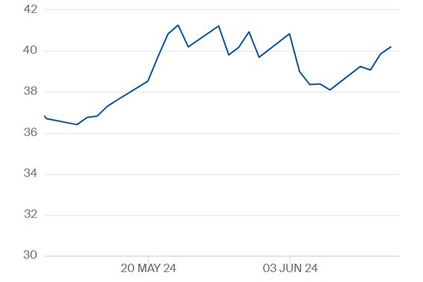 TTF-gasprijs kwartaal 1 2025 t/m 13 juni 2024. Klik hier voor de actuele prijzen op de Title Transfer Facility.
