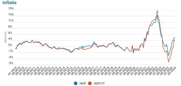 In Belgiƫ bedroeg de inflatie volgens de Europees geharmoniseerde consumptieprijsindex (HICP) in mei 4,9%, net zoals in april. De kerninflatie (inflatie zonder energie en onbewerkte levensmiddelen) bedroeg 3,4% in mei ten opzichte van 3,7% in april, zo meldt Statbel. De inflatie volgens de consumptieprijsindex (CPI) voor de maand mei bleef stabiel op 3,4% zoals in april.