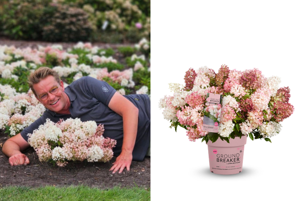 Hortensiaspecialist Alex Schoemaker uit Boskoop, die al bekend is om zijn Living Creations-hortensia's, heeft de Hydrangea paniculata Groundbreaker Blush gekweekt, die vanaf 2025 verkrijgbaar zal zijn.