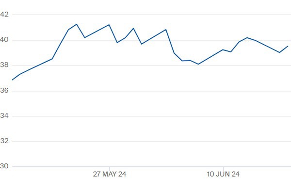 TTF-gasprijs kwartaal 1 2025 t/m 18 juni 2024. Klik hier voor de actuele prijzen op de Title Transfer Facility.