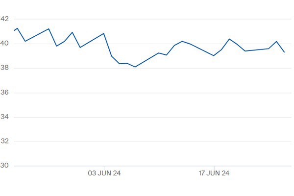 TTF-gasprijs kwartaal 1 2025 t/m 26 juni 2024. Klik hier voor de actuele prijzen op de Title Transfer Facility.